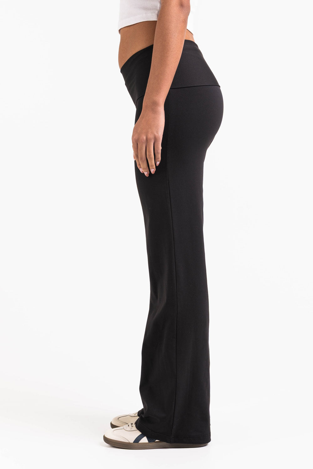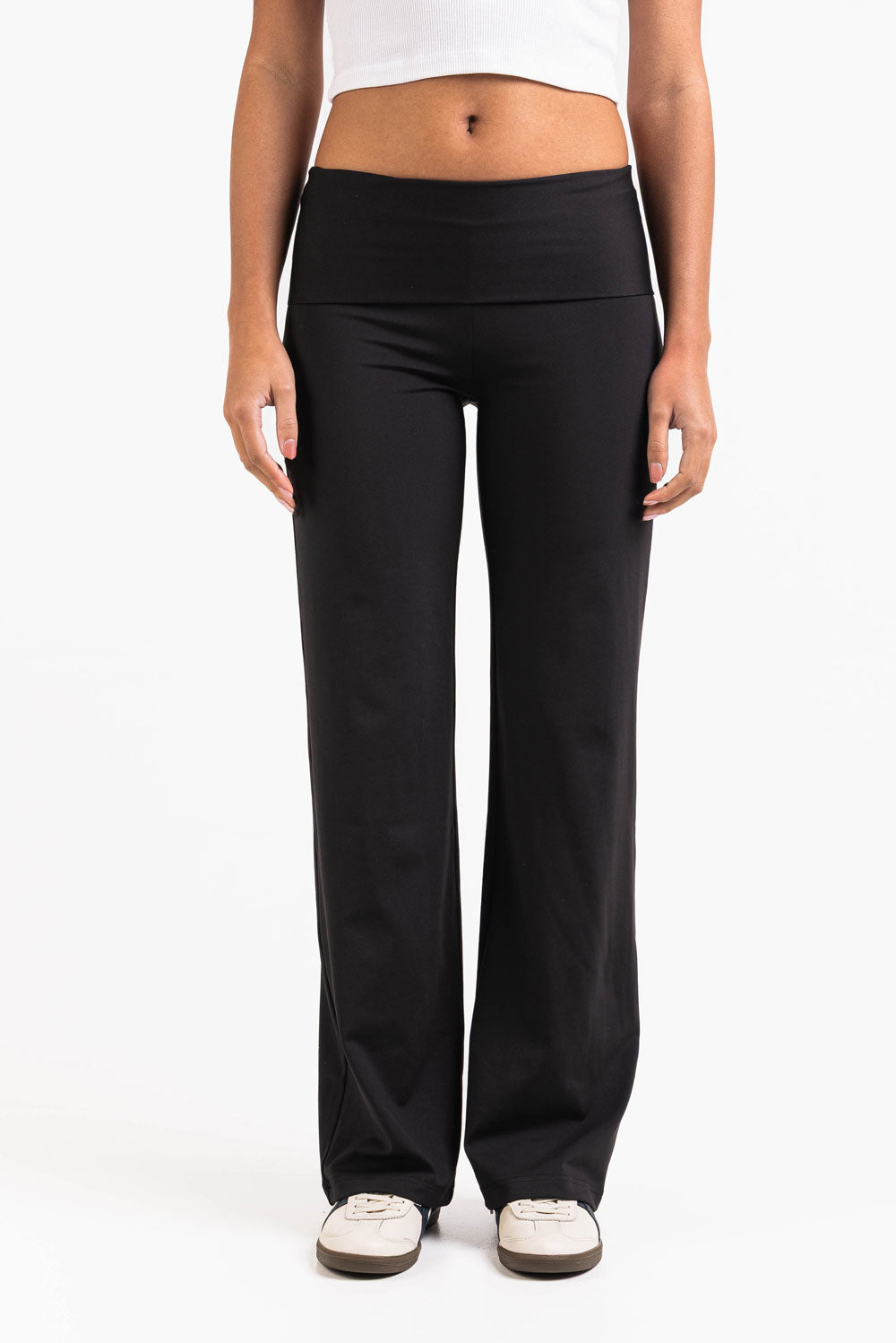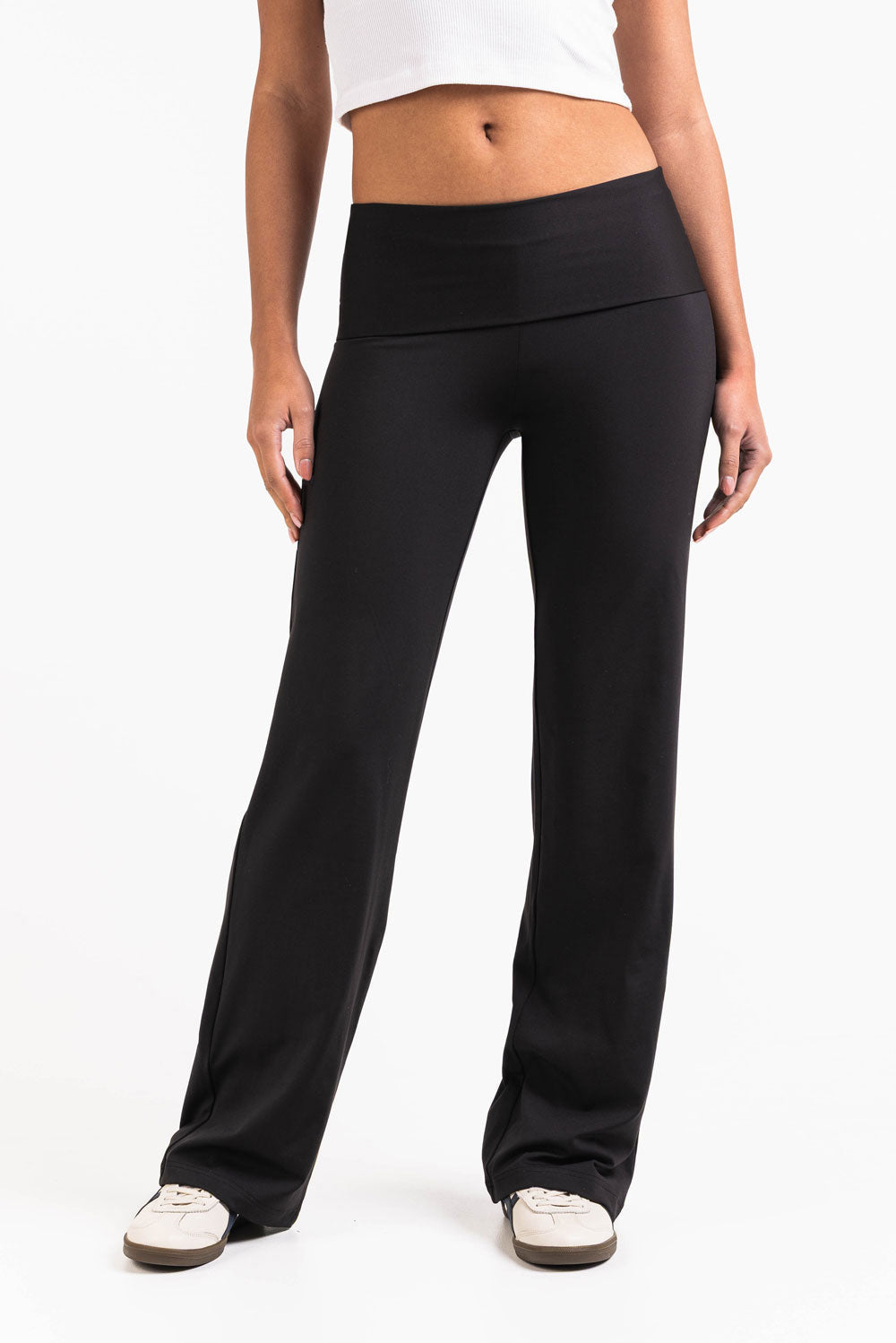 Nämä korkeavyötäröiset ja matalavyötäröiset legginsit ovat suoramallisia ja saumattomia ilman taskuja. Joustava vyötärö takaa liikkumisvapauden, tehden legginsistä täydelliset niin aktiivisiin kuin rentoihin päiviin.