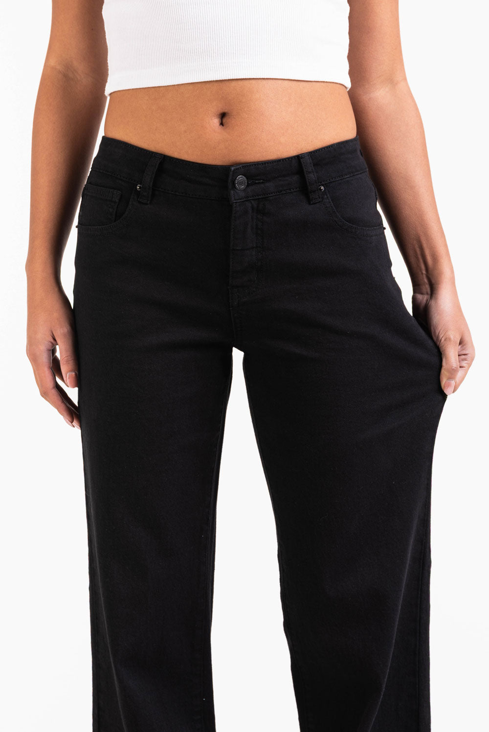 Nämä mid-waist-farkut tarjoavat tyylikkään suoran lahkeen istuvuuden ja takataskut sekä sivutaskut käytännöllisyyttä varten. Vyölenkeillä ja vetoketjulla varustettuna ne tarjoavat ajattoman tyylin, joka sopii koko päivän käyttöön.