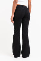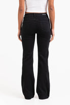 Nämä keski-vyötäröiset farkut ovat bootcut-malliset ja niissä on taka- ja sivutaskut käytännöllisyyttä varten. Vyölenkit ja vetoketjusepalus takaavat ajattoman ja ryhdikkään ilmeen, joka sopii täydellisesti rentoihin asuihin.
