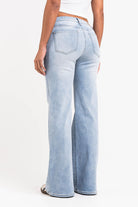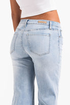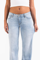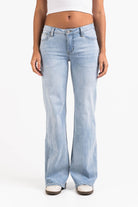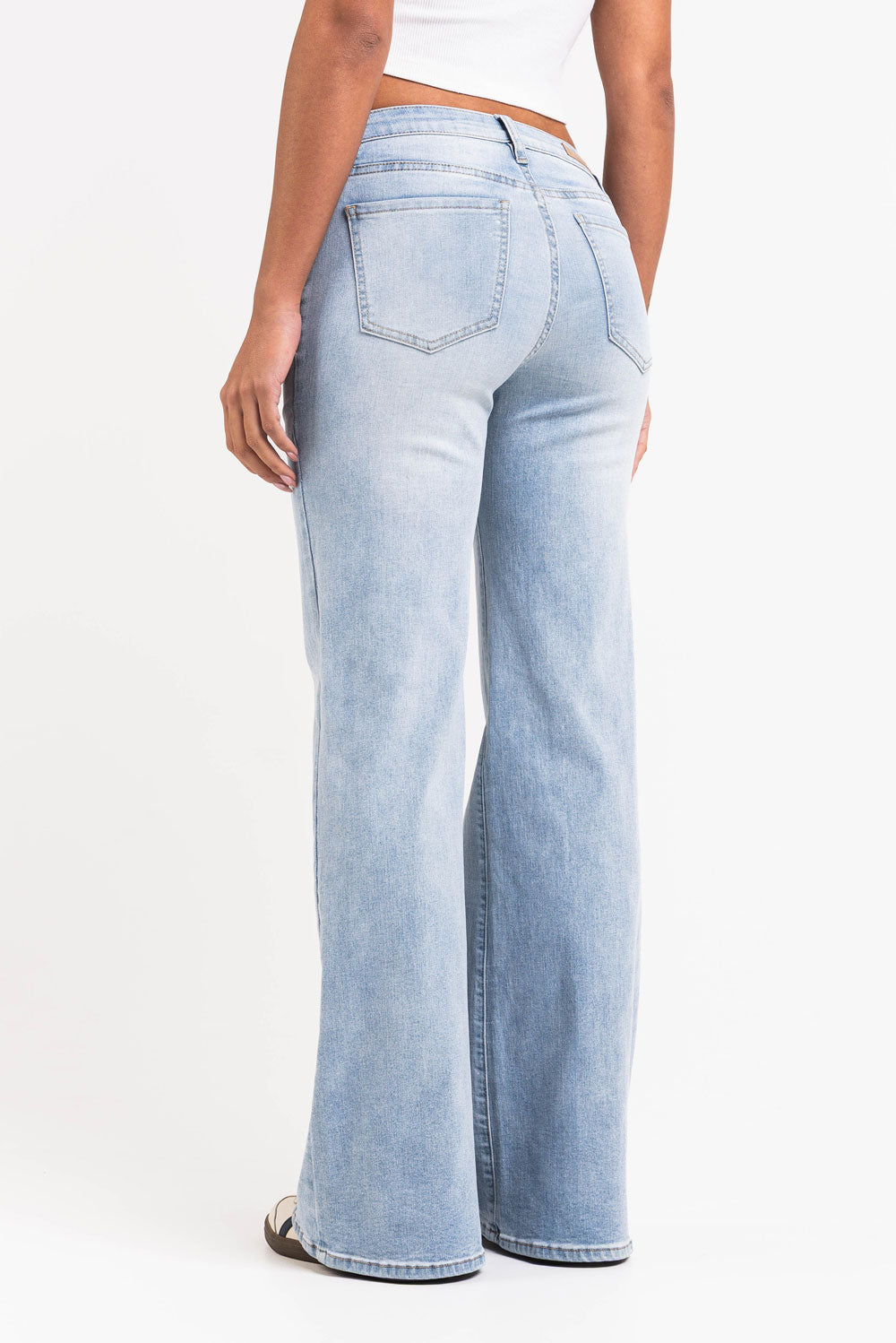 Low-waist-farkut, joissa lievästi levenevät lahkeet ja taskut edessä ja takana. Farkut suljetaan vetoketjulla ja napilla, ja niissä on vyölenkit, jotka sopivat sekä leveille että kapeille vyöille.