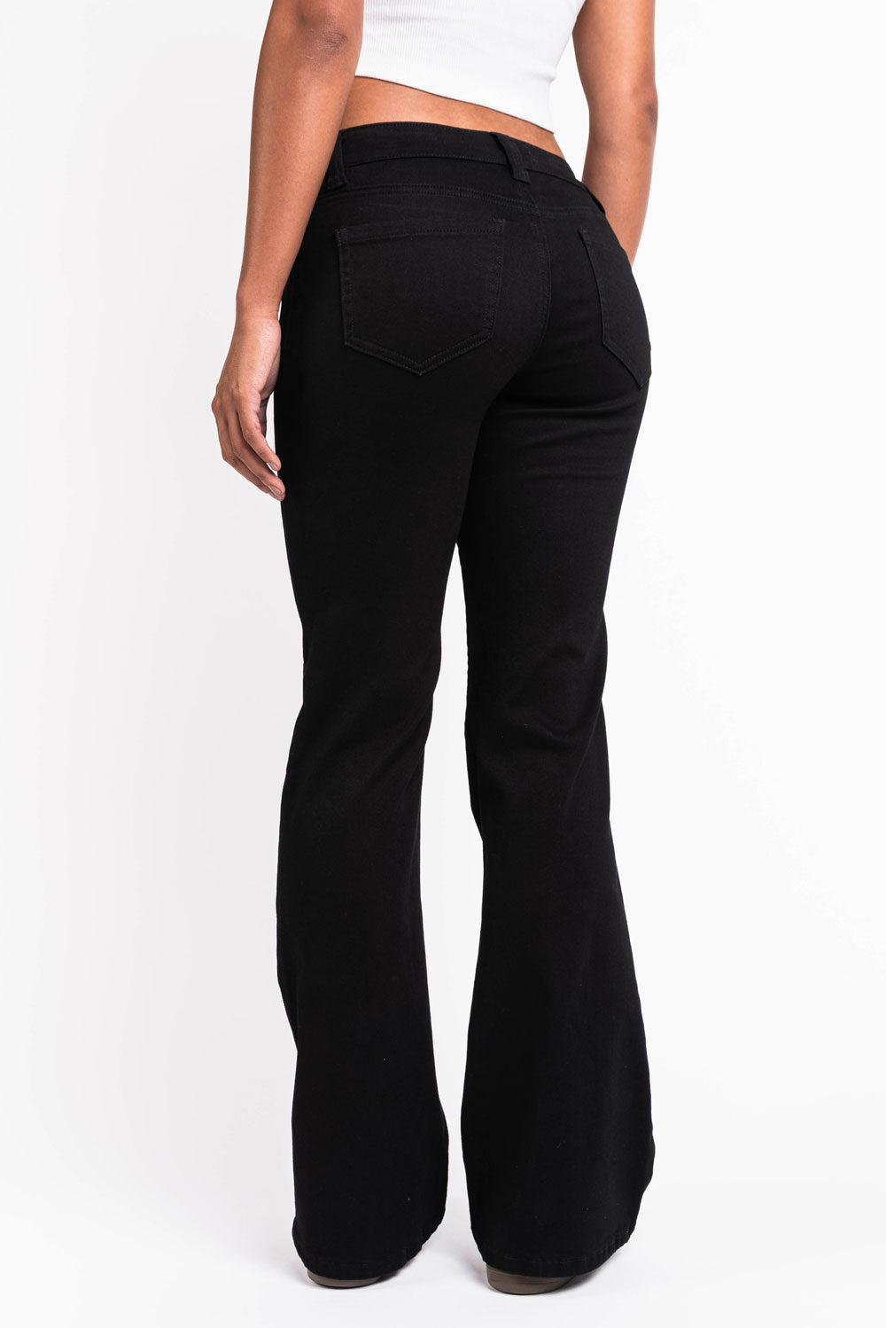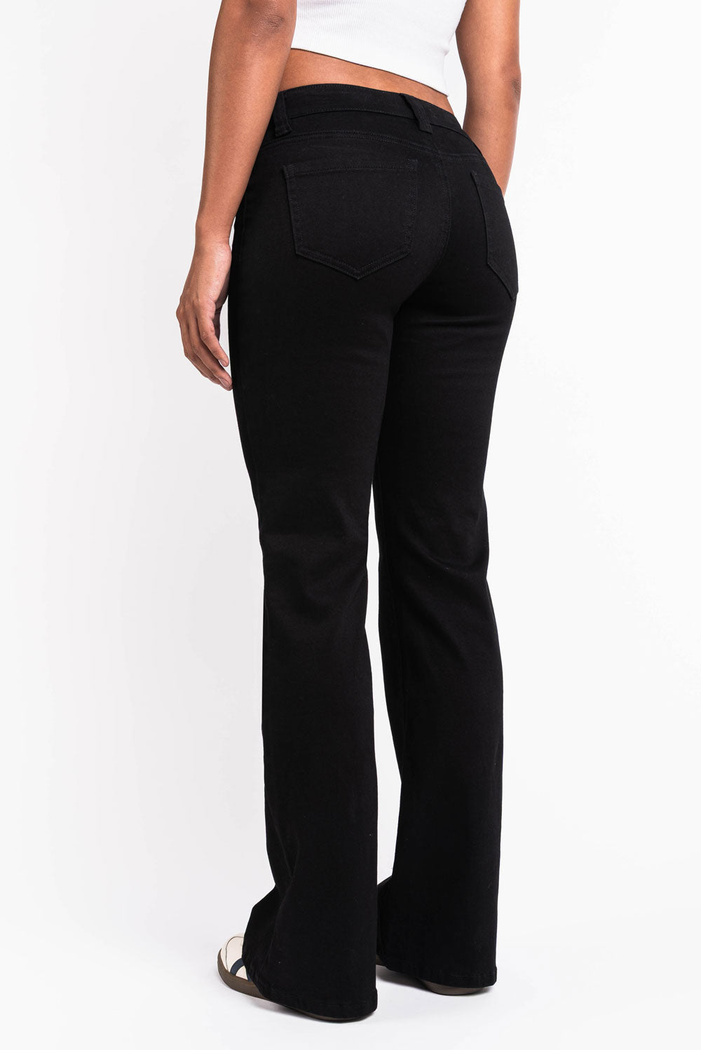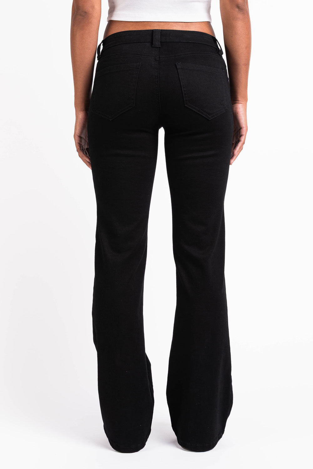 Nämä erittäin matalavyötäröiset farkut ovat bootcut-mallia ja niissä on takki- ja etutaskut käytännölliseen arkikäyttöön. Reilut vyölenkit sopivat sekä kapeille että leveille vöille. Housut suljetaan vetoketjulla ja koristeellisesti siirrottuja nappeja käyttäen tyylikkään yksityiskohdan luomiseksi.