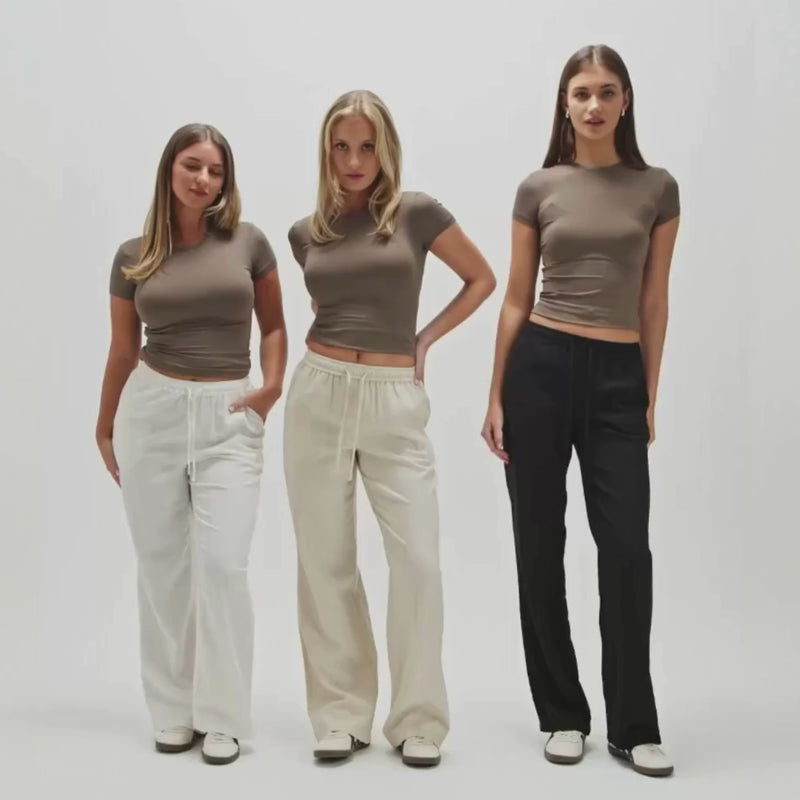 Nämä matalavyötäröiset pellavahousut ovat rennon suoralinjaiset ja niissä on käytännölliset sivutaskut. Joustava vyötärö ja kiristysnyöri takaavat kevyen ja mukavan istuvuuden rennompaan pukeutumiseen.