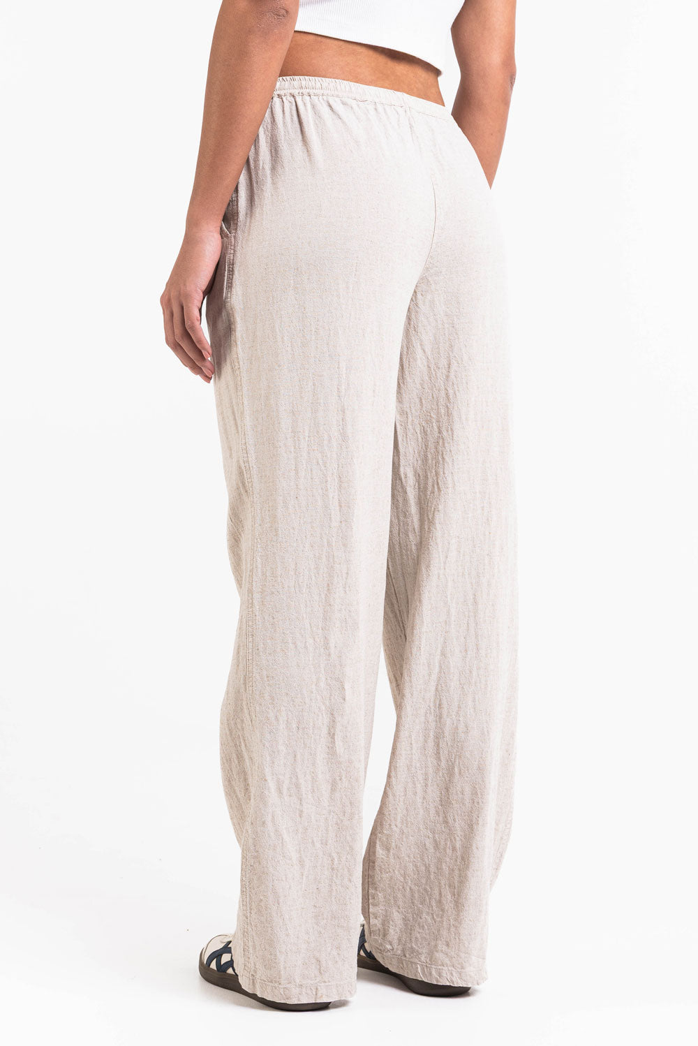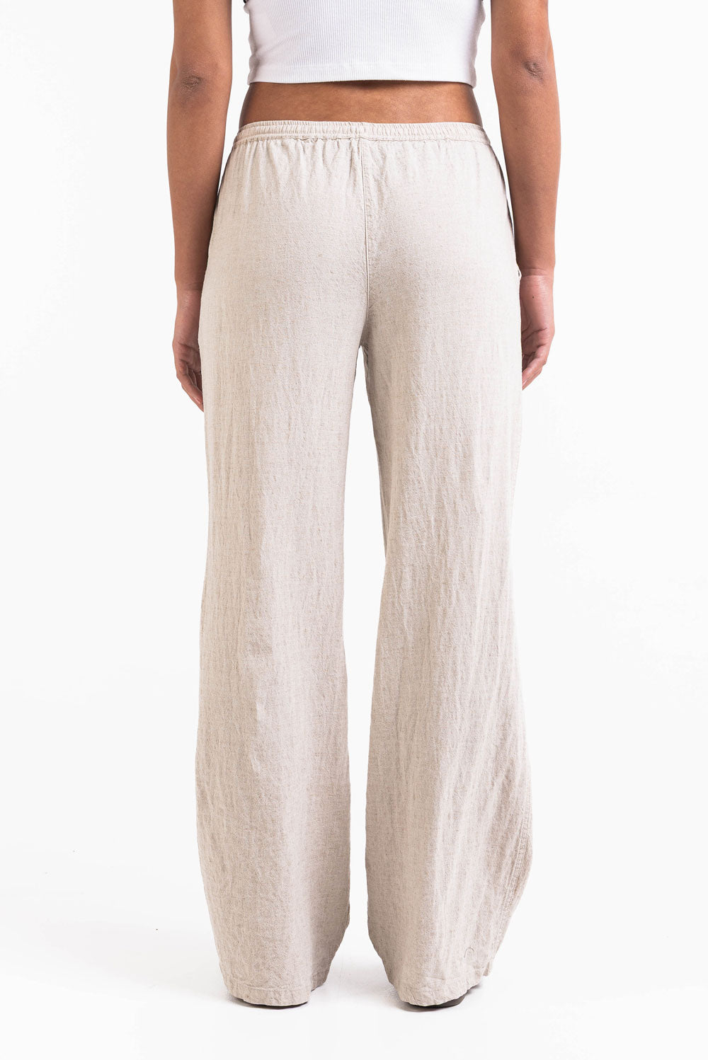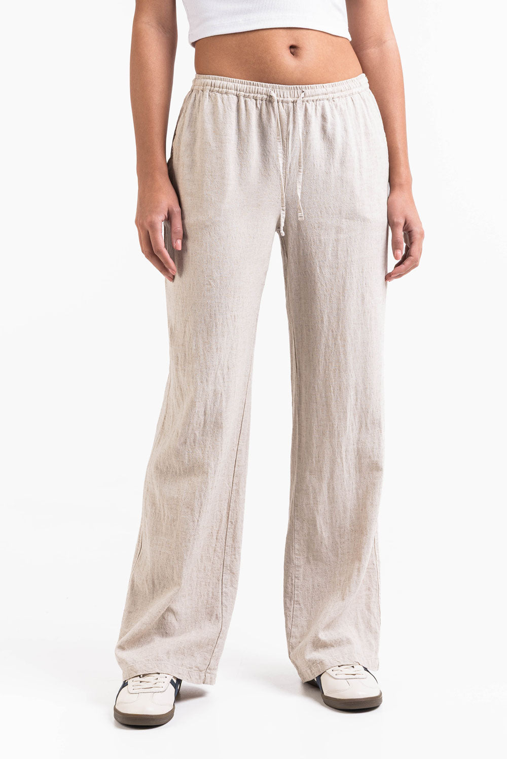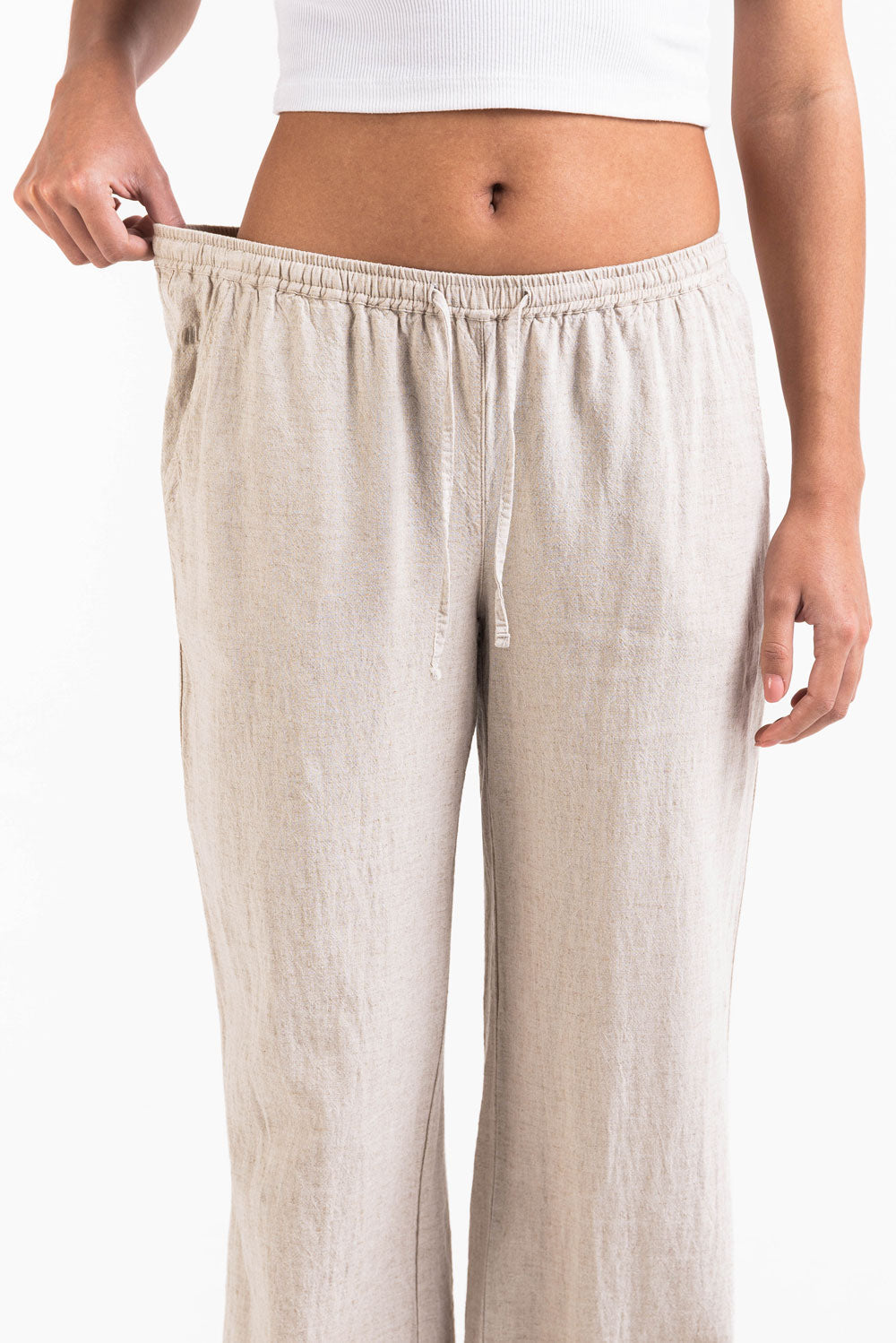 Nämä keski-vyötäröiset pellavahousut tarjoavat rennon suoralinjaisen istuvuuden ja käytännölliset sivutaskut. Joustava vyötärö, kiristysnyöri ja taitettava muotoilu varmistavat napakan istuvuuden pitäen housut kevyinä ja hengittävinä.