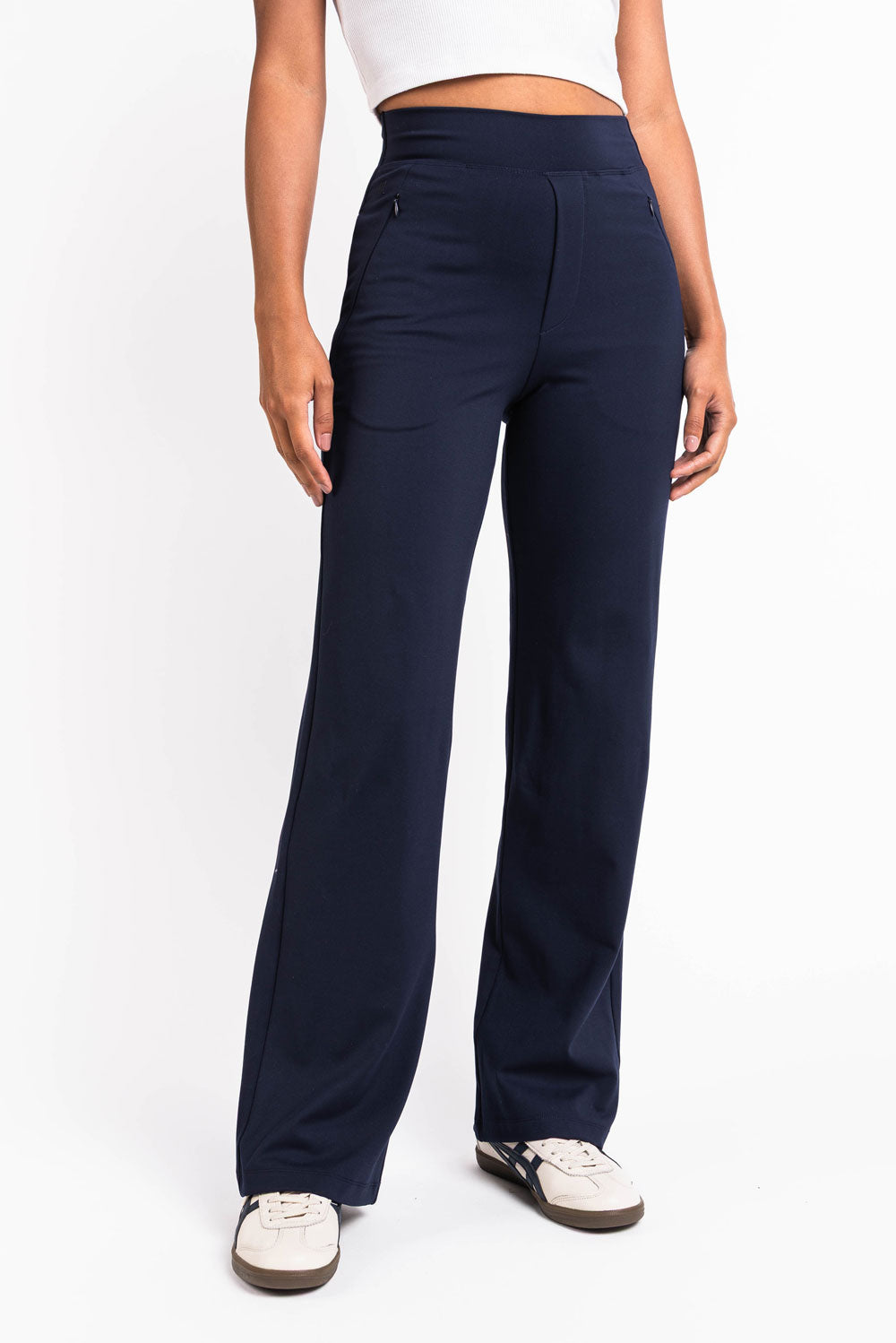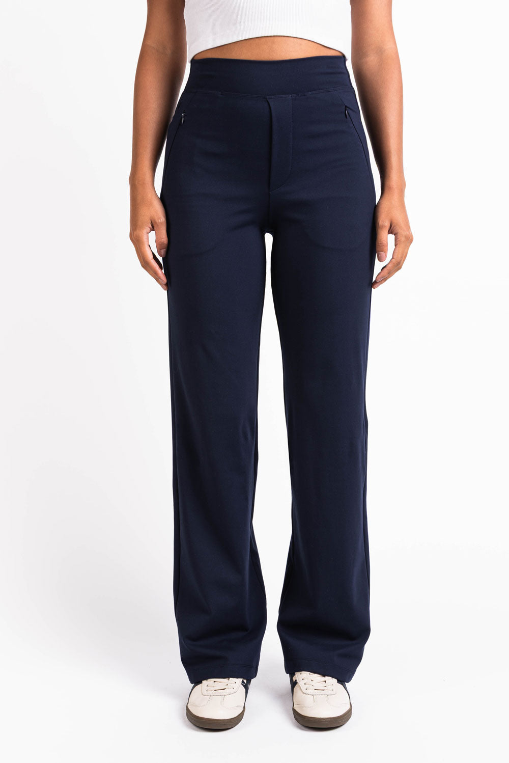 Nämä korkeavyötäröiset housut tarjoavat rennon suoralinjaisen istuvuuden ja käytännölliset sivutaskut. Joustava vyötärö ja valetusepalus tuovat mukavuutta, tehden niistä monikäyttöisen ja helposti yhdisteltävän valinnan arkipukeutumiseen.