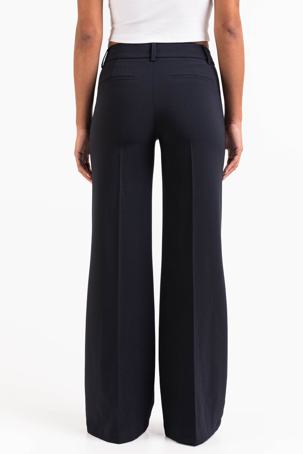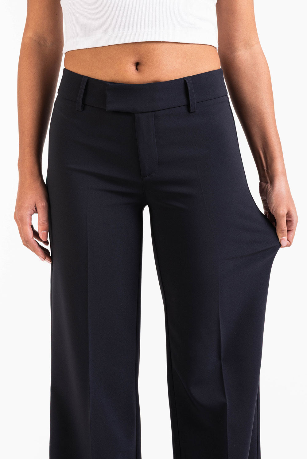 Puolivyötäröiset puvunhousut, joissa on levenevät lahkeet. Valmistettu stretch-kankaasta, joka takaa mukavan istuvuuden koko päivän ajan. Valeläpälliset takataskut ja leveät vyölenkit, jotka sopivat sekä kapeille että leveille vyöille. Housut suljetaan vetoketjulla, hakasella ja piilotetulla napilla.