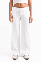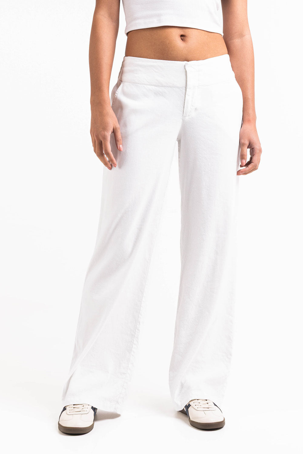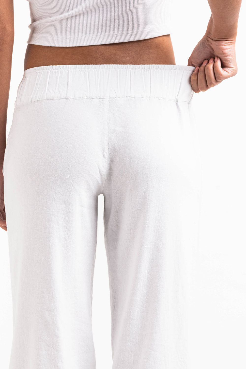 Mabel 02Low LinStretch Straight Linen Pants - White