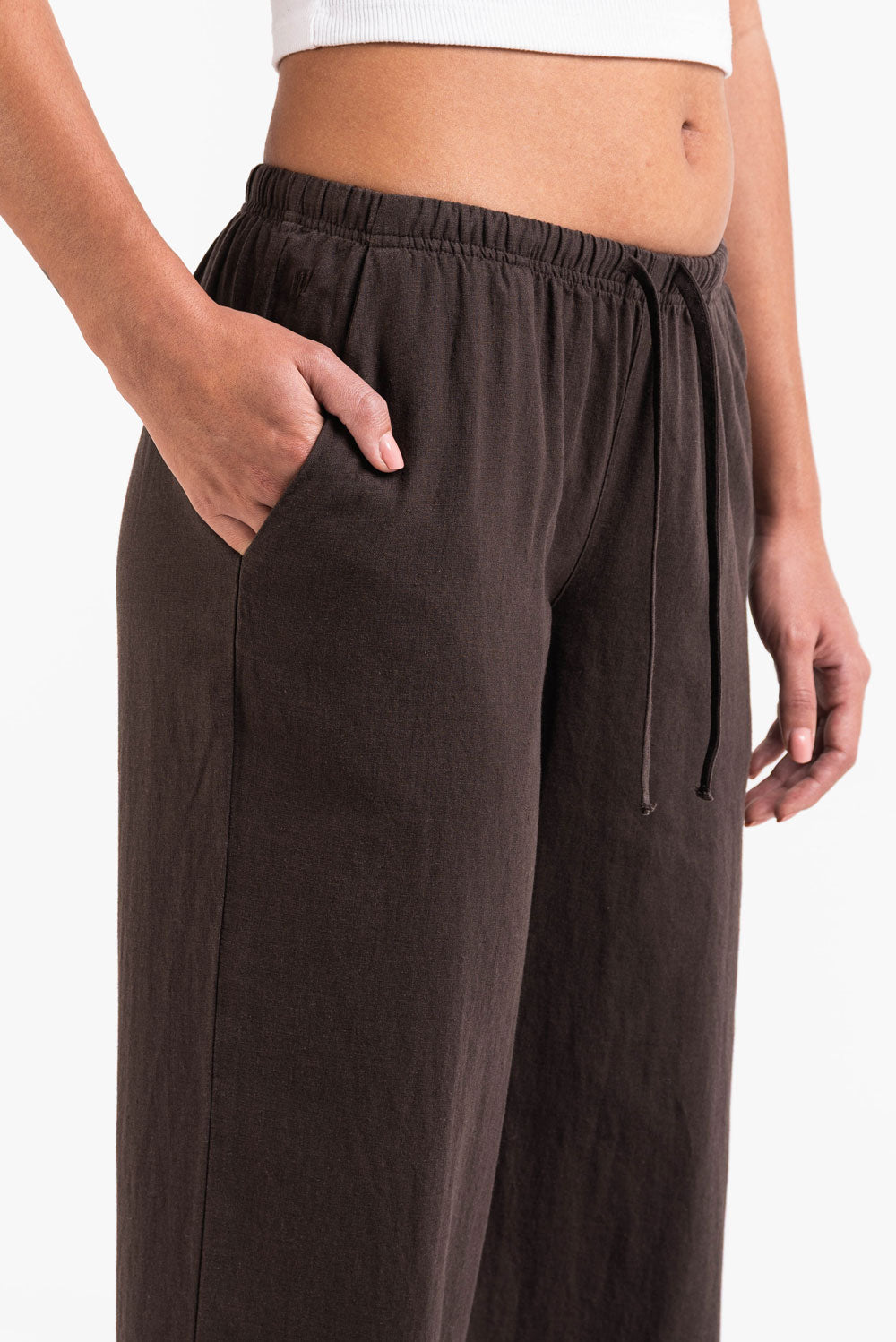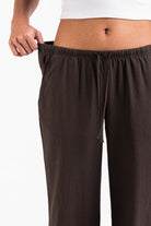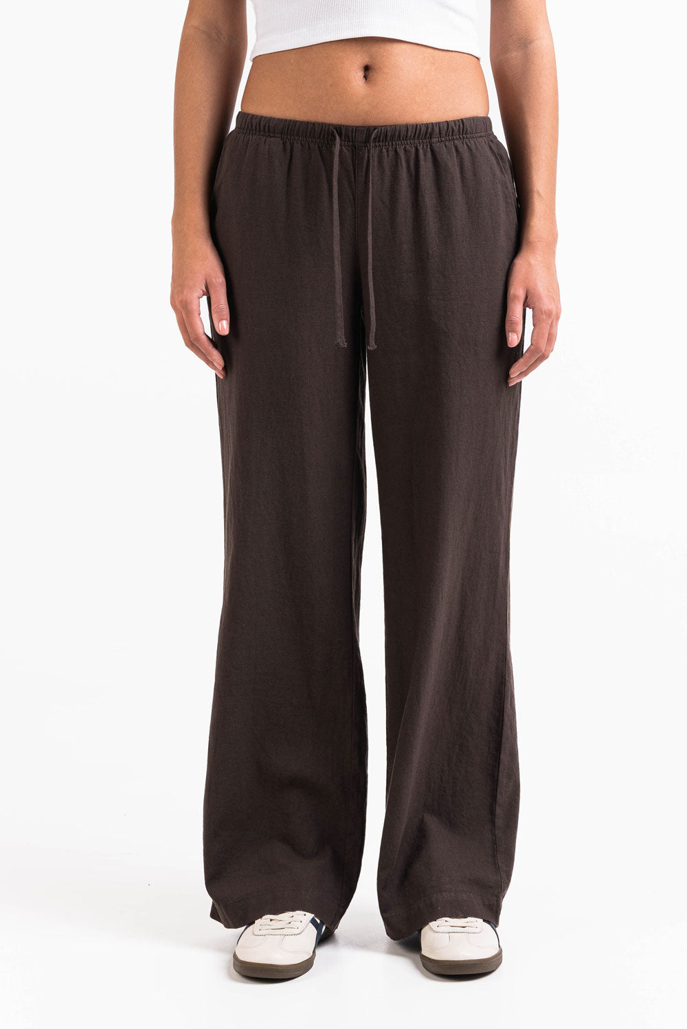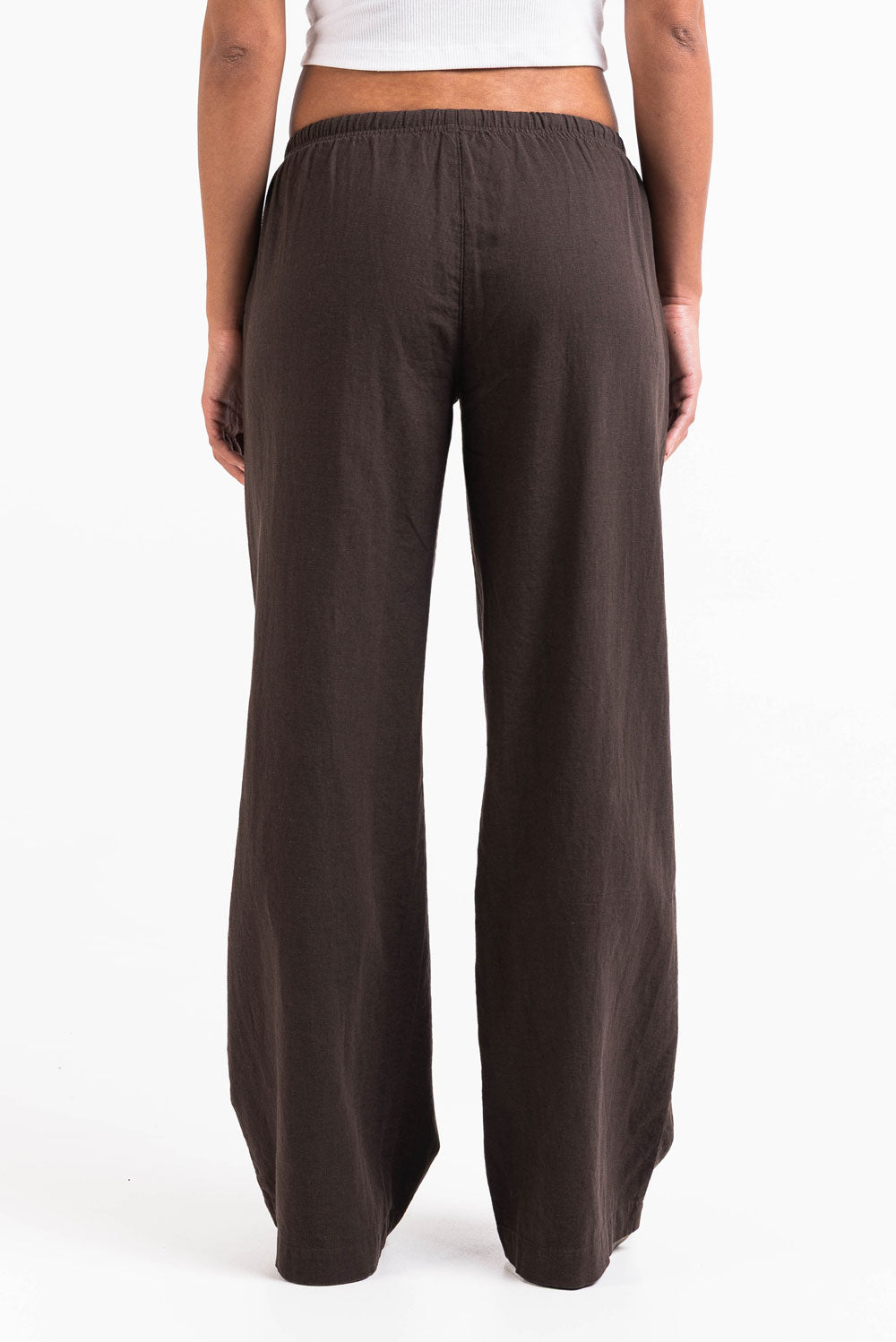 Mel 04Low Straight Linen Pants - Brown