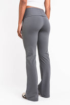These high-low waist leggings feature a trendy bootcut fit with a seamless pocketless design. An elastic waistband ensures flexibility, making these leggings perfect for both active and relaxed days alike.