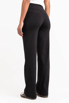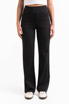 These high-waisted pants have a relaxed straight fit with practical side pockets and faux back pockets. An elastic waistband and faux fly provide comfort, making them a versatile and easy-to-wear option for everyday use.