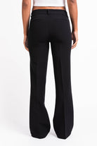 Puolivyötäröiset puvunhousut, joissa on levenevät lahkeet. Valmistettu stretch-kankaasta, joka takaa mukavan istuvuuden koko päivän ajan. Valeläpälliset takataskut ja leveät vyölenkit, jotka sopivat sekä kapeille että leveille vyöille. Housut suljetaan vetoketjulla, hakasella ja piilotetulla napilla.