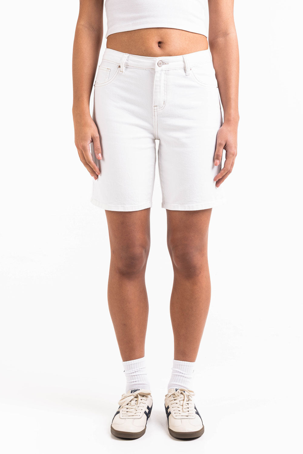 Disa 02Mid 20cm Straight Jeans Shorts - White