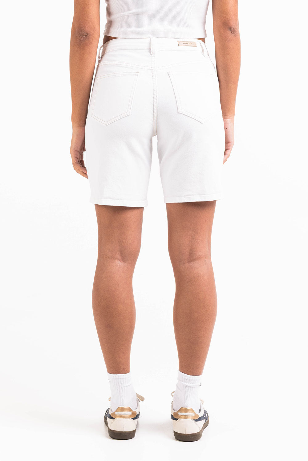 These mid-waist shorts are made from soft cotton fabric and feature a straight fit. Back pockets provide everyday functionality and fake side pockets. Designed with belt loops and a zip fly, they offer a timeless and relaxed look.
