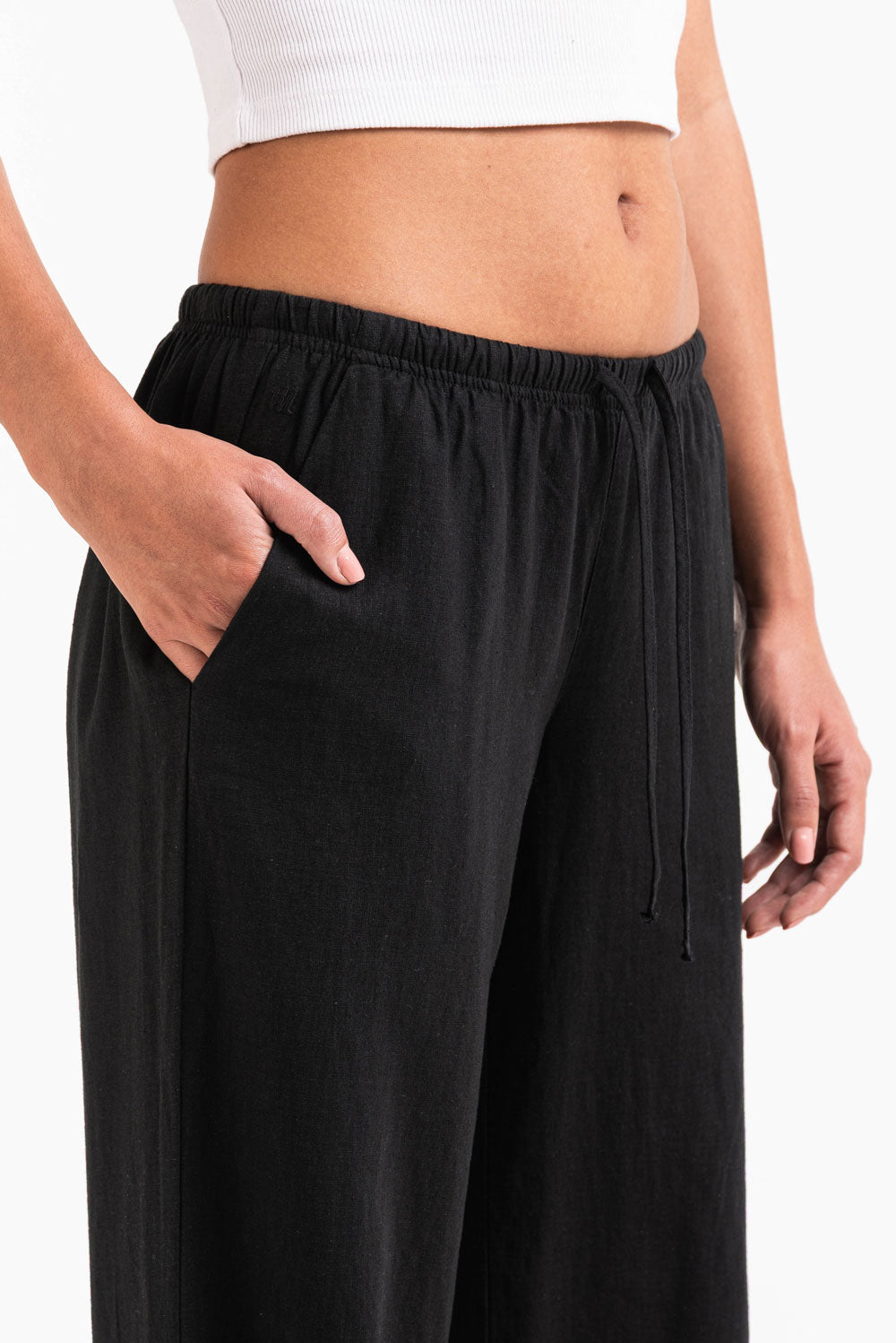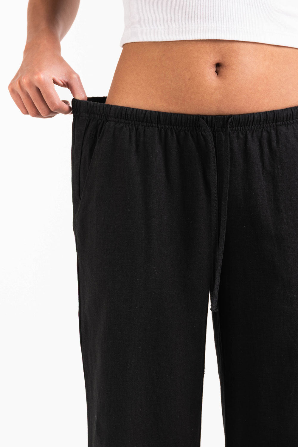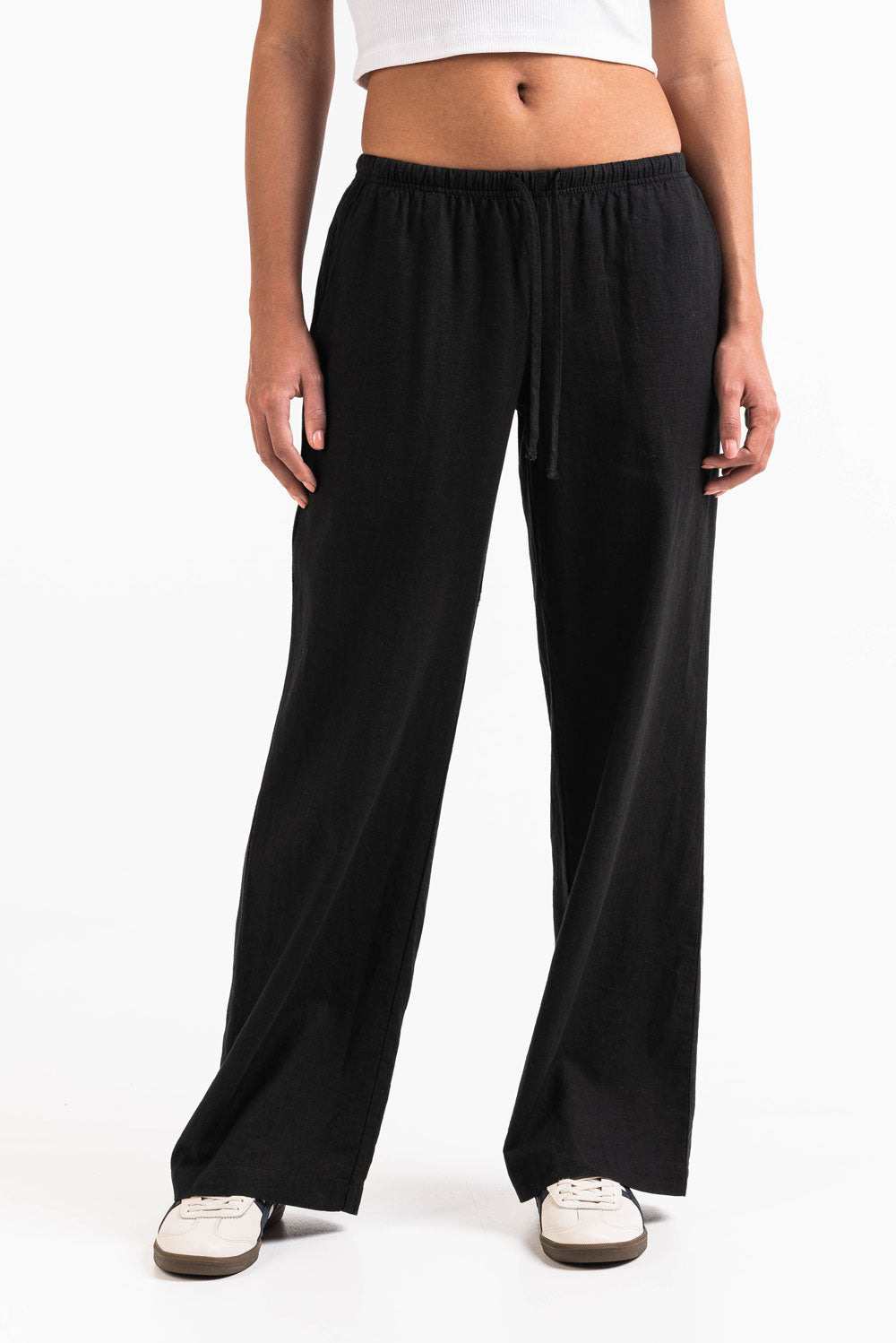 Nämä matalavyötäröiset pellavahousut ovat rennon suoralinjaiset ja niissä on käytännölliset sivutaskut. Joustava vyötärö ja kiristysnyöri takaavat kevyen ja mukavan istuvuuden rennompaan pukeutumiseen.