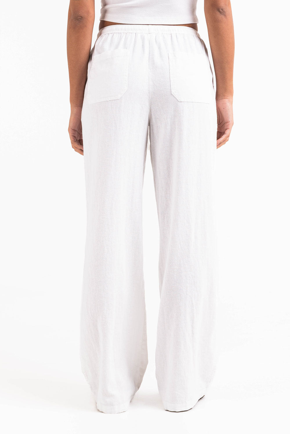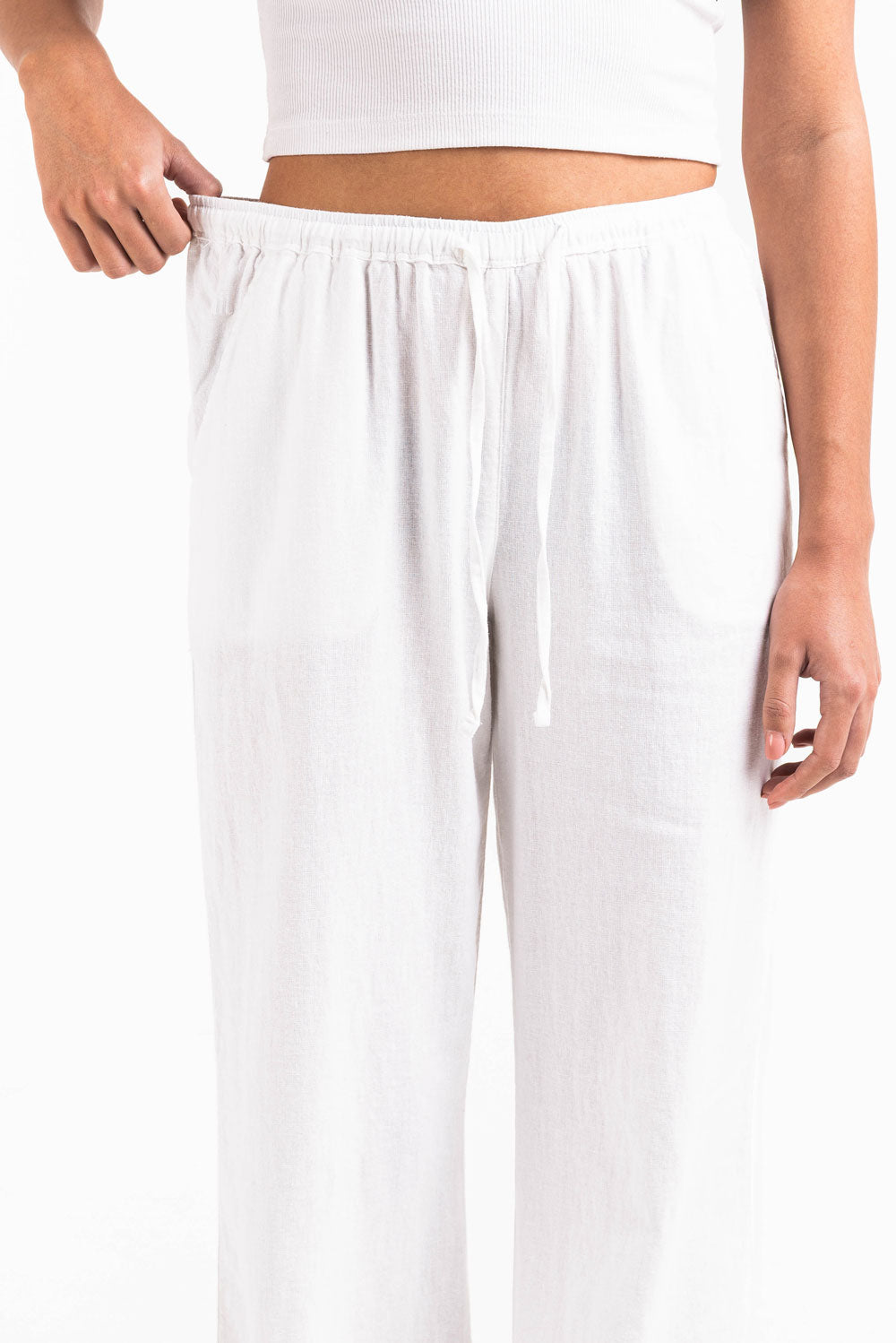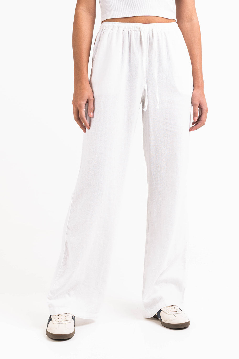 Nämä korkeavyötäröiset pellavahousut tarjoavat hengittävän suoralinjaisen istuvuuden ja käytännölliset sivutaskut. Joustava vyötärö, kiristysnyöri ja taitettava muotoilu tekevät niistä helpon valinnan rennompaan ja mukavaan pukeutumiseen.