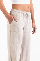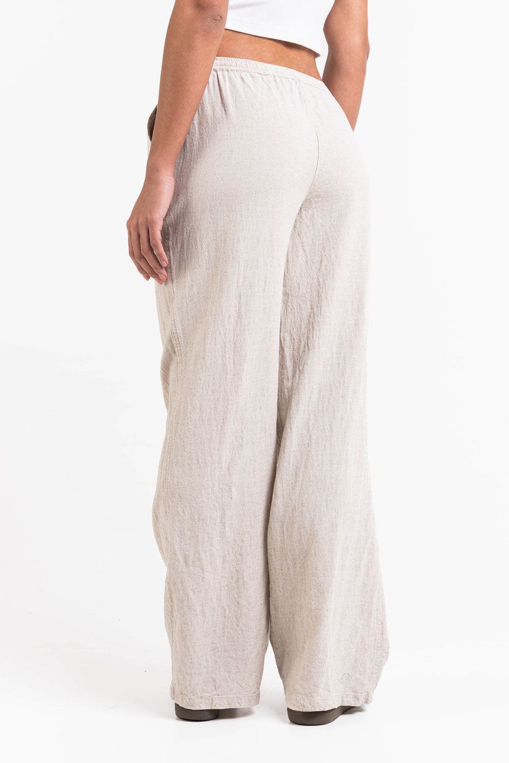 Nämä keski-vyötäröiset pellavahousut tarjoavat rennon suoralinjaisen istuvuuden ja käytännölliset sivutaskut. Joustava vyötärö, kiristysnyöri ja taitettava muotoilu varmistavat napakan istuvuuden pitäen housut kevyinä ja hengittävinä.