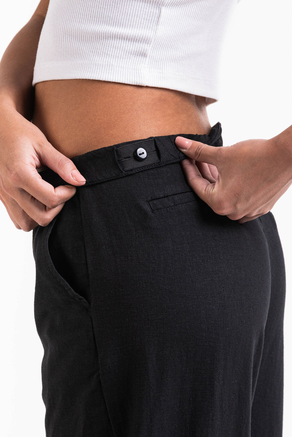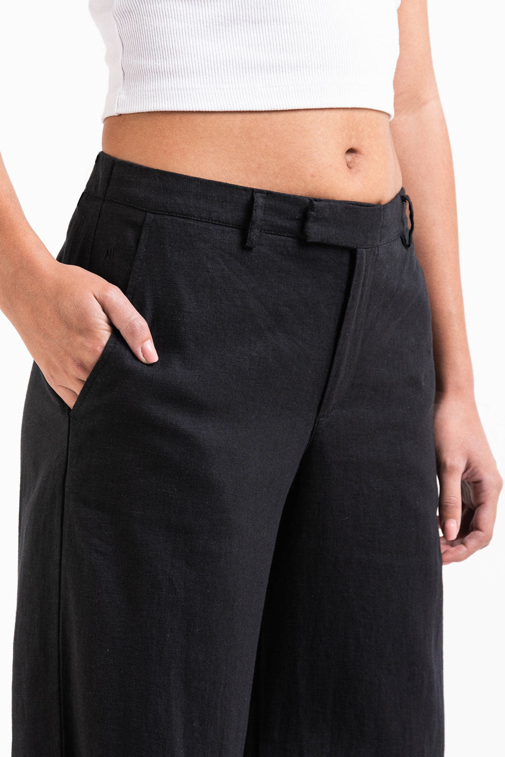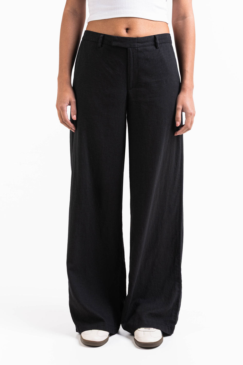 Thilde 02Mid Leveät Pellavahousut - Black
